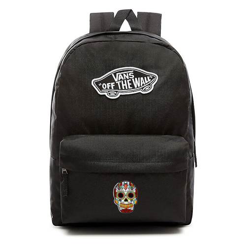VANS Realm Backpack black VN0A3UI6BLK + Custom Mexican Skull White Birds