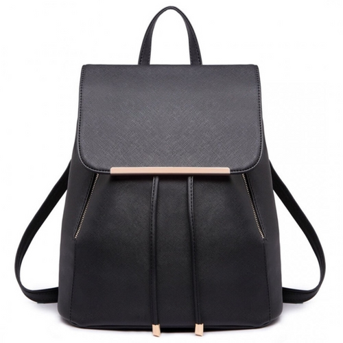 Women's leather black backpack KONO Aurora for school and work