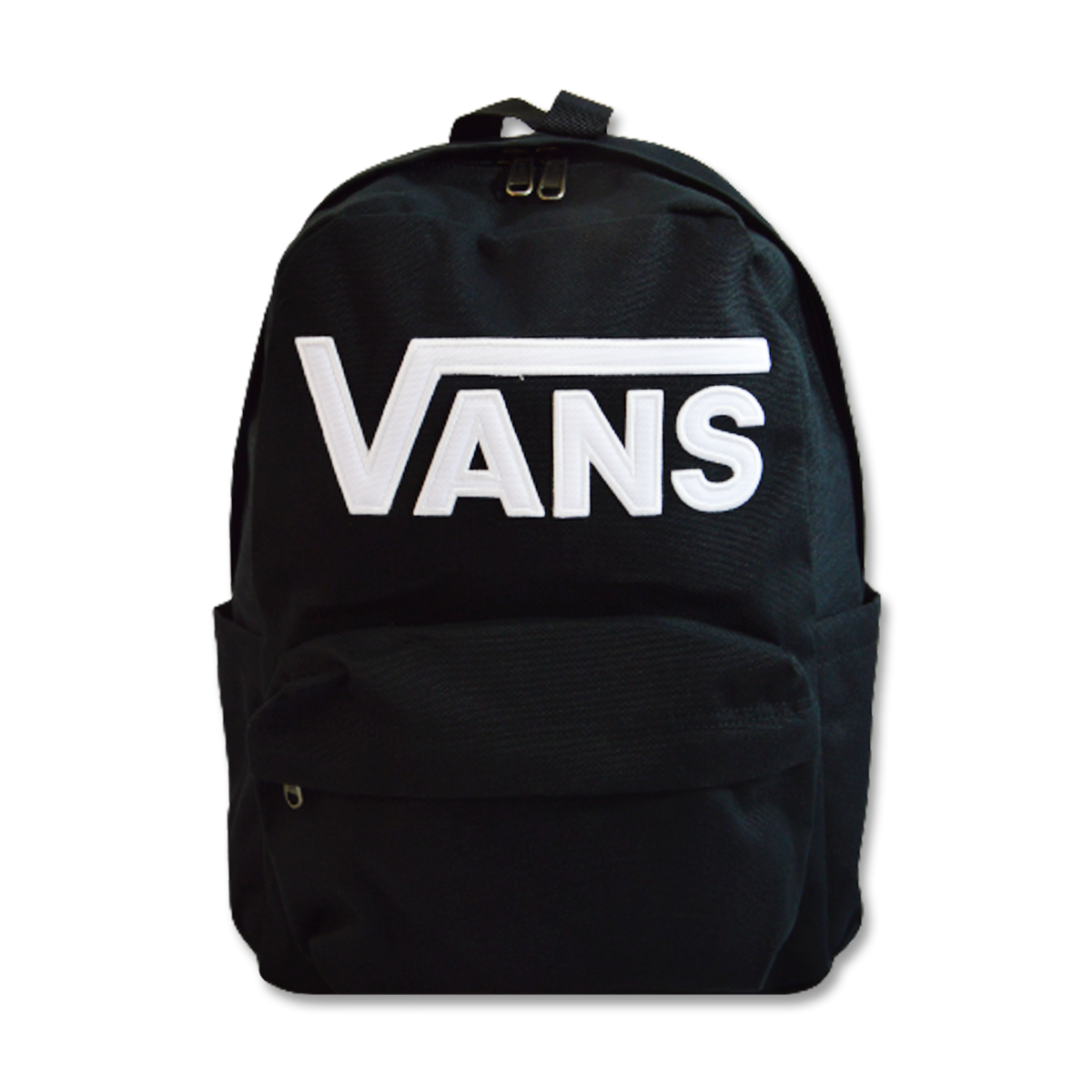Na froncie plecaka wyszyto duże, białe logo VANS.