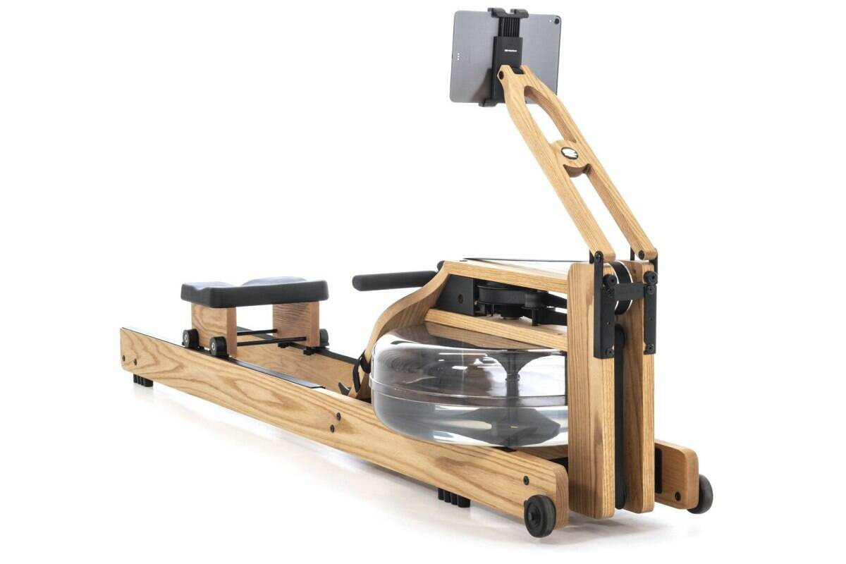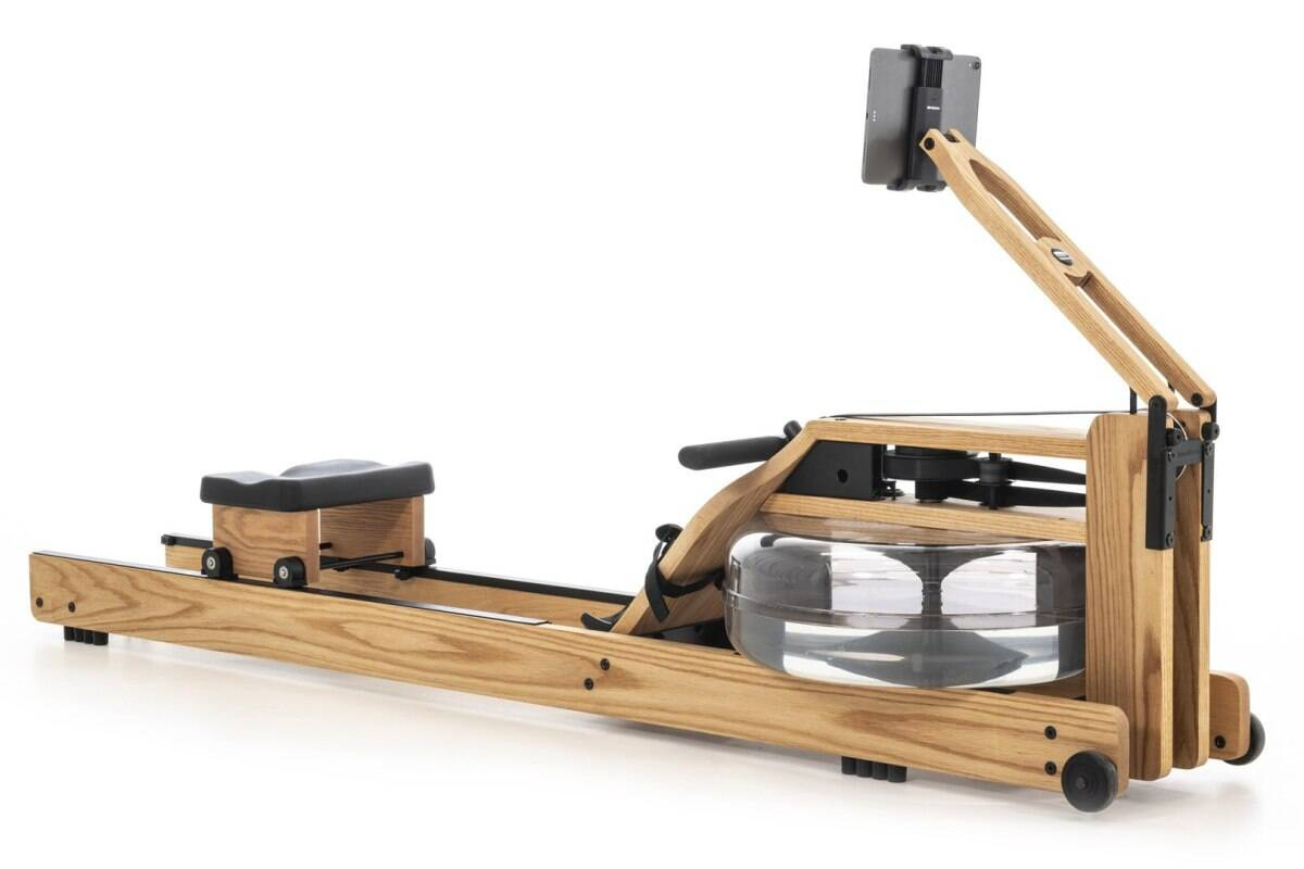 Wioślarze WaterRower nie wymagają skomplikowanego montażu, nie zabierają dużo miejsca a po skończonym treningu wystarczy postawić je pionowo.